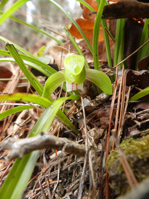 シュンラン 通常よりも一回り以上小さな花がひっそりと咲いていました。 |