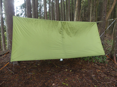 タープを上に張ってみました。アライテントのビバークタープ Mです。今回はとりあえず試しに張ってみただけで、すぐに撤収しました。 | |