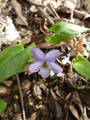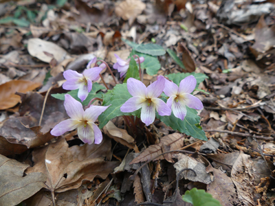 | エイザンスミレ 沢山咲いている株もありましたが、花が傷んでいたので一輪でも綺麗に咲いているものを選んで撮りました。こちらは色も花の形も標準的なものと思います。 |