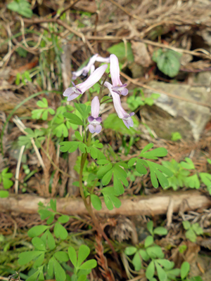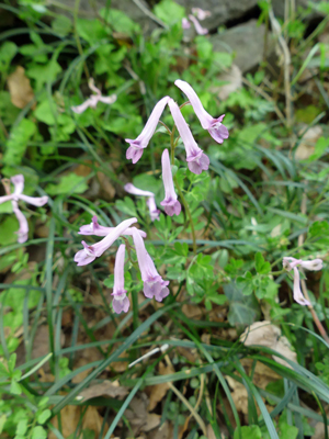 | ジロボウエンゴサク 例年見ている所で見つけました。花付きはあまり良くないです。 |