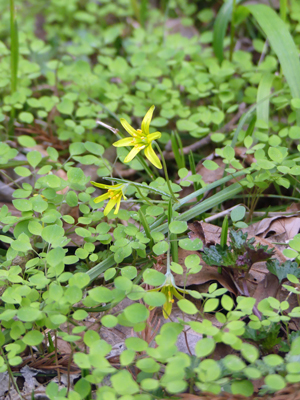 | ミヤマカタバミ まだ蕾だったり下を向いて咲いているものが多かったです。 |