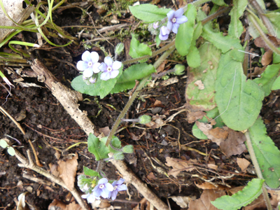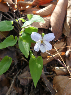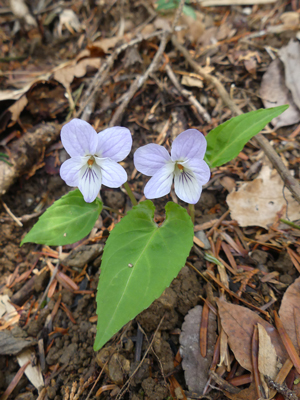 マルバスミレ 下山した後の道の脇で咲いているのを見つけました。 |