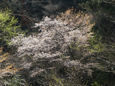 ![]() 山桜が山腹に咲いているのが見えたので少し近づいて撮りました。 |