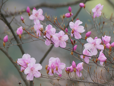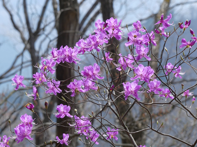 ![]() ミツバツツジ アカヤシオよりは少し標高が低いところから出始めました。沢山咲いていました。 |