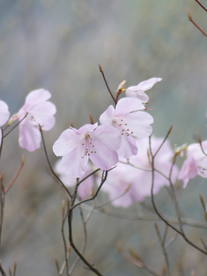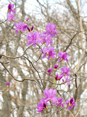 | 落葉樹林の中だと花が目立ちます。アカヤシオと違い、花の色や模様に個体差はないと思います。 | ||