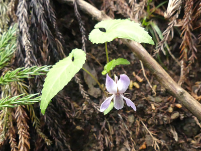 ![]() ヒナスミレ 植林の登山道脇に一つだけ咲いていました。 |