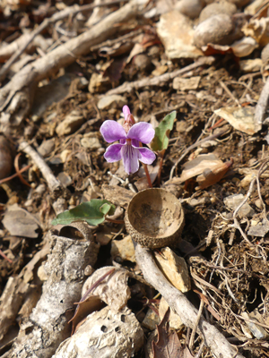 | マキノスミレ 日当たりの良い乾いた斜面で少し咲いていました。 |
