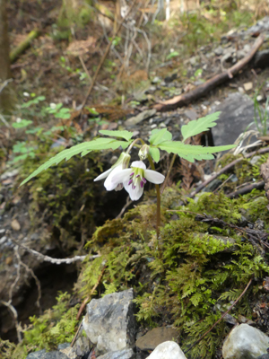 ミツバコンロンソウ ニッコウネコノメのすぐ横で咲いていました。 花はまだ少なかったです。 |