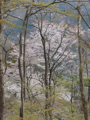 | 少し標高が低いところでは山桜が咲いていました。近くで咲いていて、少しアップにして撮りました。 | 新緑に包まれていてとても綺麗でした。 | |