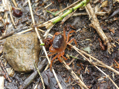 雨のせいか登山道に沢蟹が出てきました。別の場所でも出てきていて、全部で3回見かけました。 | |