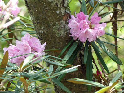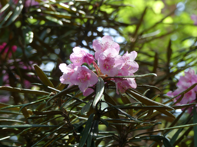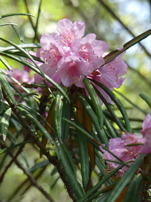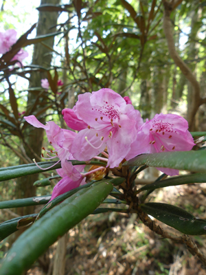 ![]() ホソバシャクナゲ 初めて見ました。花の色は濃いめで中の模様もはっきりとしていて綺麗でした。 |