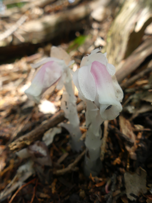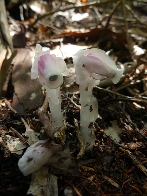 | こちらのピンク色のものは、普通のギンリョウソウを教えて頂いた方に案内してもらって見ることができたものです。初めて見ました。 | ||