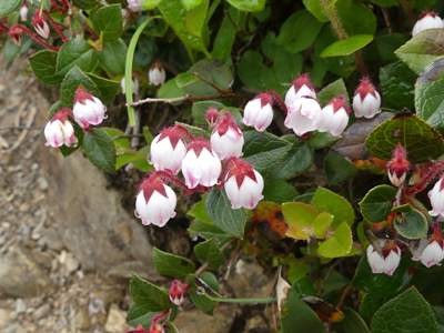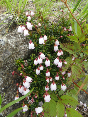 | ツガザクラ 小さな株はところどころで見ましたが、まとまって咲いていたのはこれだけでした。 |