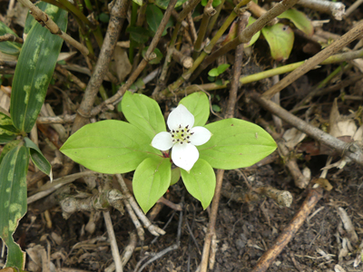 ![]() ゴゼンタチバナ 登ってゆくと登山道の横に出てきました。 |