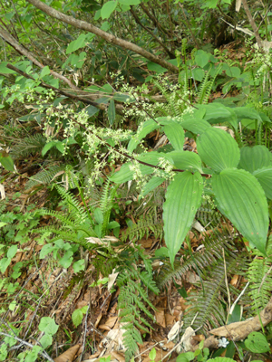 ヒロハユキザサ 標高の低いところの登山道脇で咲いていました。 |