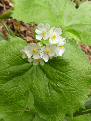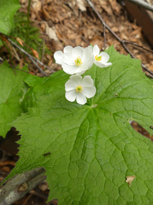 | サンカヨウ 沢沿いの斜面で咲いていました。 |