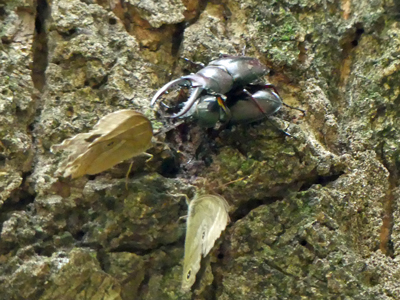 ![]() 日曜日に井の頭公園に行ってマヤランを見に行きましたが、天気のせいか出ている数が少なくて綺麗なものはあまり無かったのですが、左側の写真のサガミランモドキの蕾が遊歩道近くに出ていました。翌朝に見に行っていたところ、ノコギリクワガタのつがいが樹液に来ていました。(2025/06/30 記) |