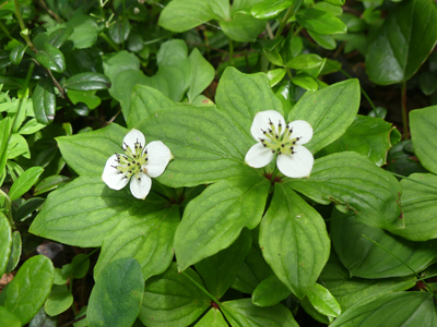 ![]() ゴゼンタチバナ 登山道の途中でいくつか見かけました。 |
