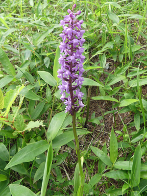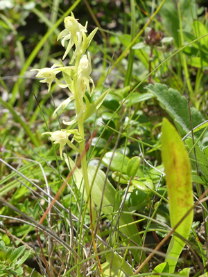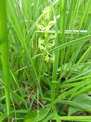 | ムラサキタカネアオヤギソウと思いますが、合っているでしょうか。 | テガタチドリ 一本だけ湿原近くで咲いているのを見つけました。 |