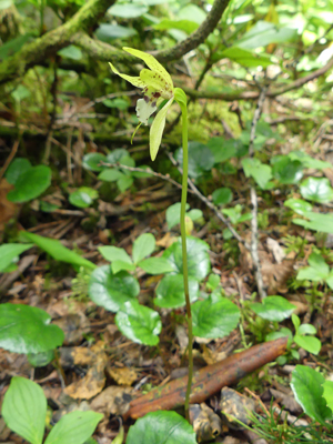 | イチヨウラン 一緒に登った方に見つけていただきました。終わりかけですが向きを工夫して撮ったものです。 |