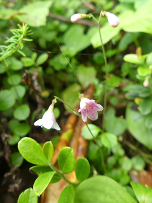 | リンネソウ 標高が高いところの登山道脇で咲いていました。 |
