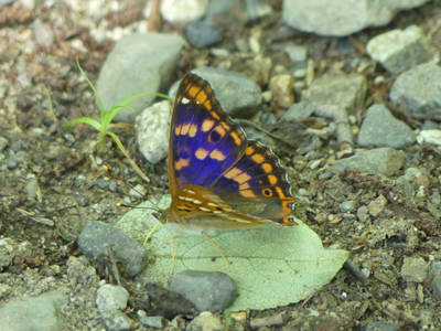 ![]() コムラサキ 向きによって紫色は見えたり見えなかったりします。構造色だったと思います。 |