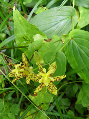 タマガワホトトギス 林道沿いの斜面で咲いていましたが、まだ蕾のものが多かったです。 |