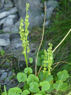 | マルバギシギシ 最初は右側の写真の実を見て気付きましたが、その後に左側の写真の花が咲いている株を見つけました。 |