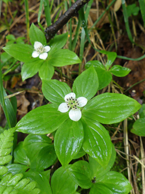 | ゴゼンタチバナ 下山する途中の登山道脇にいくつか咲いていました。 |