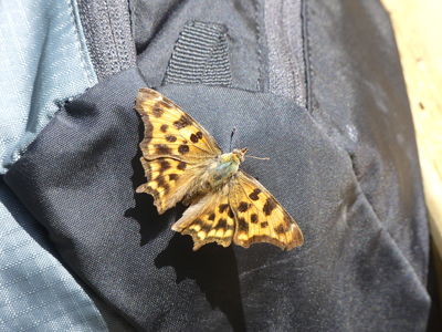 ![]() シータテハ リュックを置いて休んでいたらばとまってくれました。汗を吸っていたのだと思います。ロシアで見て以来、久し振りに見ました。 |