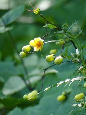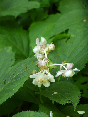 | アカバナ科の花が咲いていました。イワアカバナでしょうか。 | ギンバイソウ キレンゲショウマ同様、鹿よけの柵の中で茂っていました。 |