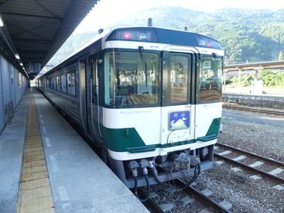 阿波池田から貞光は特急剣山1号で行きました。始発ということで駅でヘッドマークの取り付けを行っていました。触らせてもらったのですがずっしりと重く、頑丈に作られていました。 | |