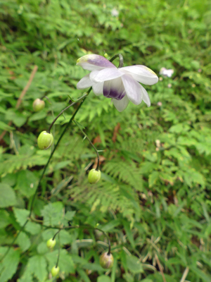 | レンゲショウマ 鹿よけの柵で保護してある所で見ました。花の色は個体差があり、この花は少し濃いめのように思いました。 |