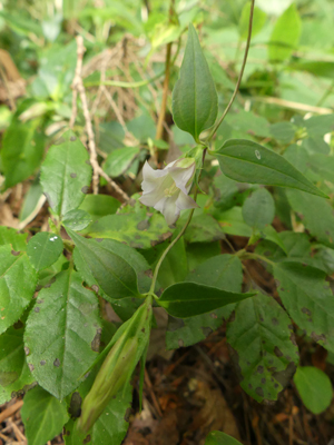 | ツルリンドウ まだほとんど咲いていませんでした。注意して見ていたらば花を見つけることができました。 |