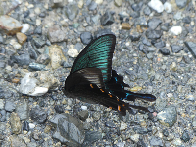 ![]() カラスアゲハ 山道の砂利に降りて給水していました。 |