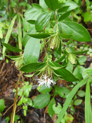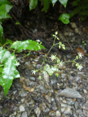 | オオヤマハコベ 数は多かったですが暗いところで生えているものが大半です。これは少し明るい所で咲いていました。 |