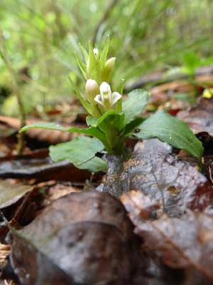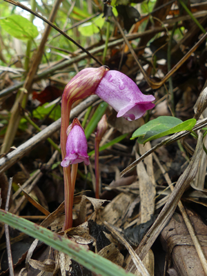 | アケボノシュスラン まだ咲き始めでした。正面から花の中が見えるように撮りました。 |