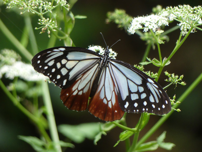 ![]() アサギマダラ 朝方は昨日の雨のせいか、昨日の雨のせいか翅を拡げて乾かす?ようにしていました。また、飛行記録を取るためか、翅に文字が書かれていた個体も見ました。 |
