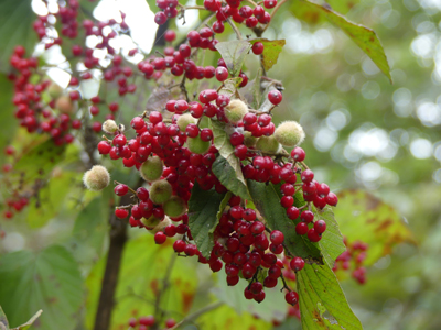 ![]() ガマズミの実に毛が生えたような緑色の玉がついていました。詳しい方に教えてもらったところ、虫こぶ(ガマズミミケフシ)だそうで、ガマズミミケフシタマバエという昆虫のせいだそうです。一か所しか出ておらず、見たのも初めてでした。 |