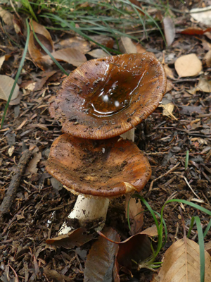 | 古いですがコウタケのように見えるキノコがありましたが、はっきりしません。 | こちらのキノコはかなり大きかったです。種類はよくわかりません。 | |
