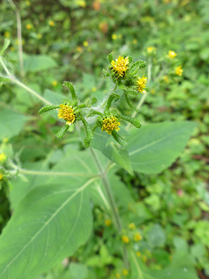 | メナモミ 地味な小さな花ですが、5枚の総苞片が面白い形です。 |