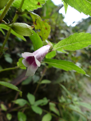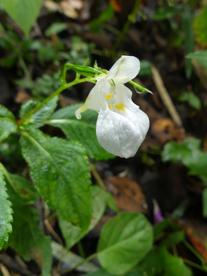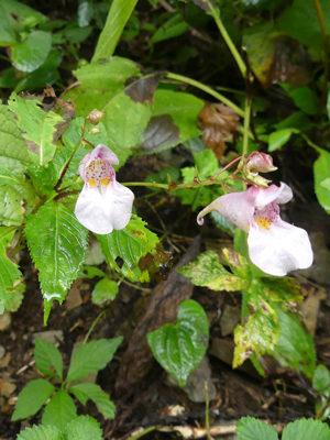 | ツリフネソウ まだ沢山咲いていましたが、通常のものよりも色が薄い花を見かけました。 |