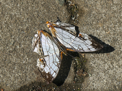 イシガケチョウ 登山口の近くの公園の中を歩いていたらば見慣れない蝶らしき昆虫が地面の近くを飛んでいて、よくみたらばイシガケチョウでした。 調べてみると、関東地方でもいくつか見つかっているようなので、おそらく定着しているものと思います。温暖化に伴い、これから増えるのでしょうか? |