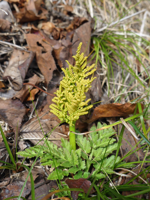 | フユノハナワラビ 日当たりが良い乾いた所に出ていたせいか、丈が低くてがっしりした印象でした。 |