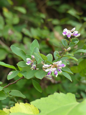 キハギ 登山口手前の道沿いで見つけました。まだ咲いていました。 |