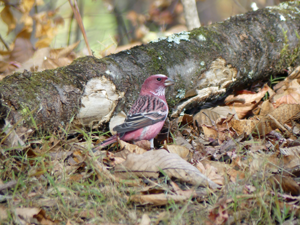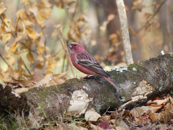 | オオマシコ 頭や首の周りに白いところがあるように思えるので若い雄ではないかと思いますがどうでしょうか。 |