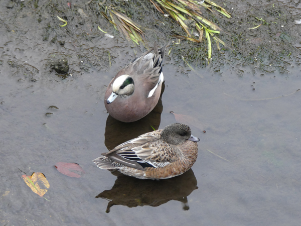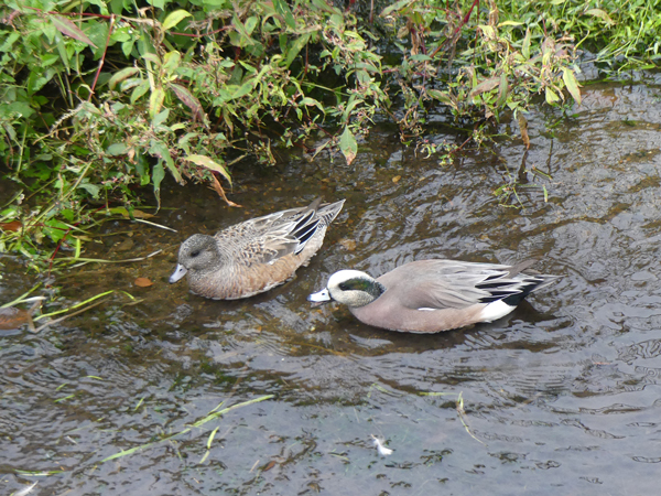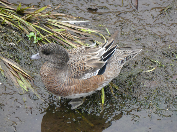 | ヒドリガモ 普通のヒドリガモが数羽、近くに居ました。雌ですが、顔の色がアメリカヒドリよりも少し薄いように思いました。 |