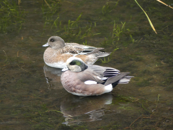 | アメリカヒドリ 前回と同じく雌雄2羽で一緒に行動していました。(2025/12/27撮影) |