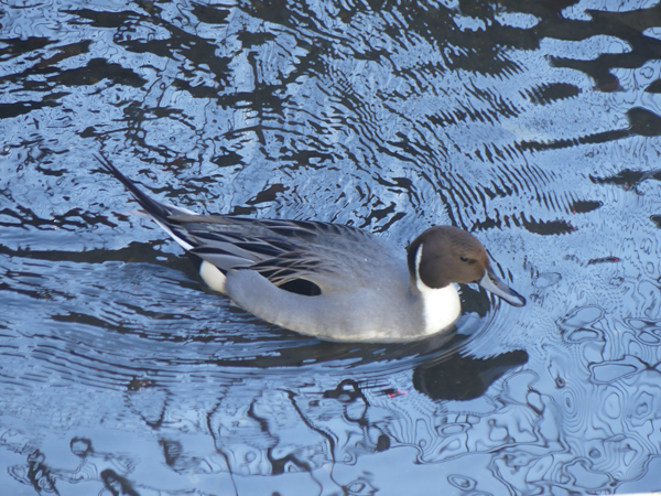 | オナガガモ 前日は居着いている場所に到着したのが遅かったせいか首を身体の中に入れて寝てしまっていましたが、この日は活発に泳いでいました。(2025/12/28撮影) |