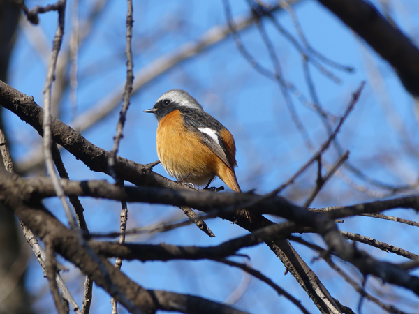 | ジョウビタキ この前の日は雌を見かけましたが、今回は雄が近くに出てきてくれました。(2025/12/28撮影) |